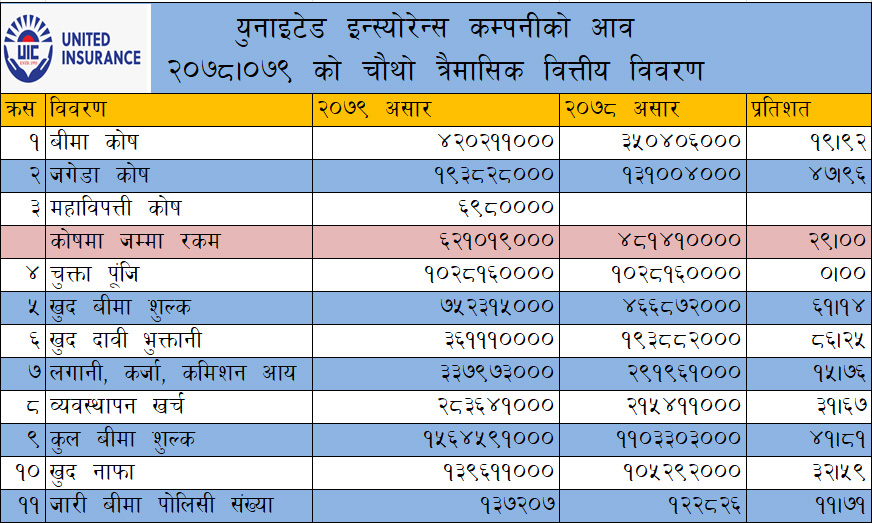 युनाईटेड इन्स्योरेन्सको खुद मुनाफा ३२ प्रतिशतले बढ्यो, मुनाफा कति ?