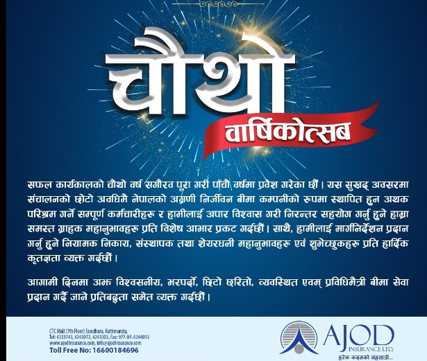 विविध कार्यक्रमका साथ अजोड इन्स्योरेन्स कम्पनीको चौथौ वार्षिकोत्सव मनाईदै, प्रविधिमैत्री बीमा सेवा प्रदान गर्ने प्रतिवद्धता