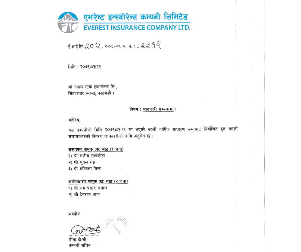 एभरेष्ट इन्स्योरेन्सद्धारा पाँच जना संचालक निर्वाचित