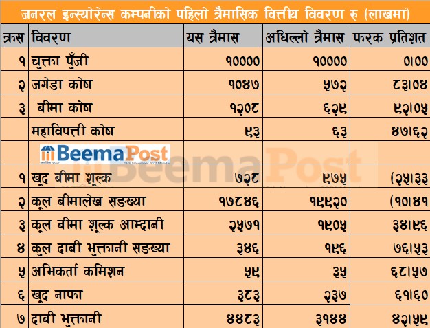 जनरल इन्स्योरेन्स कम्पनीको खुद बीमाशुल्क आर्जन घट्यो, मुनाफा बढ्यो