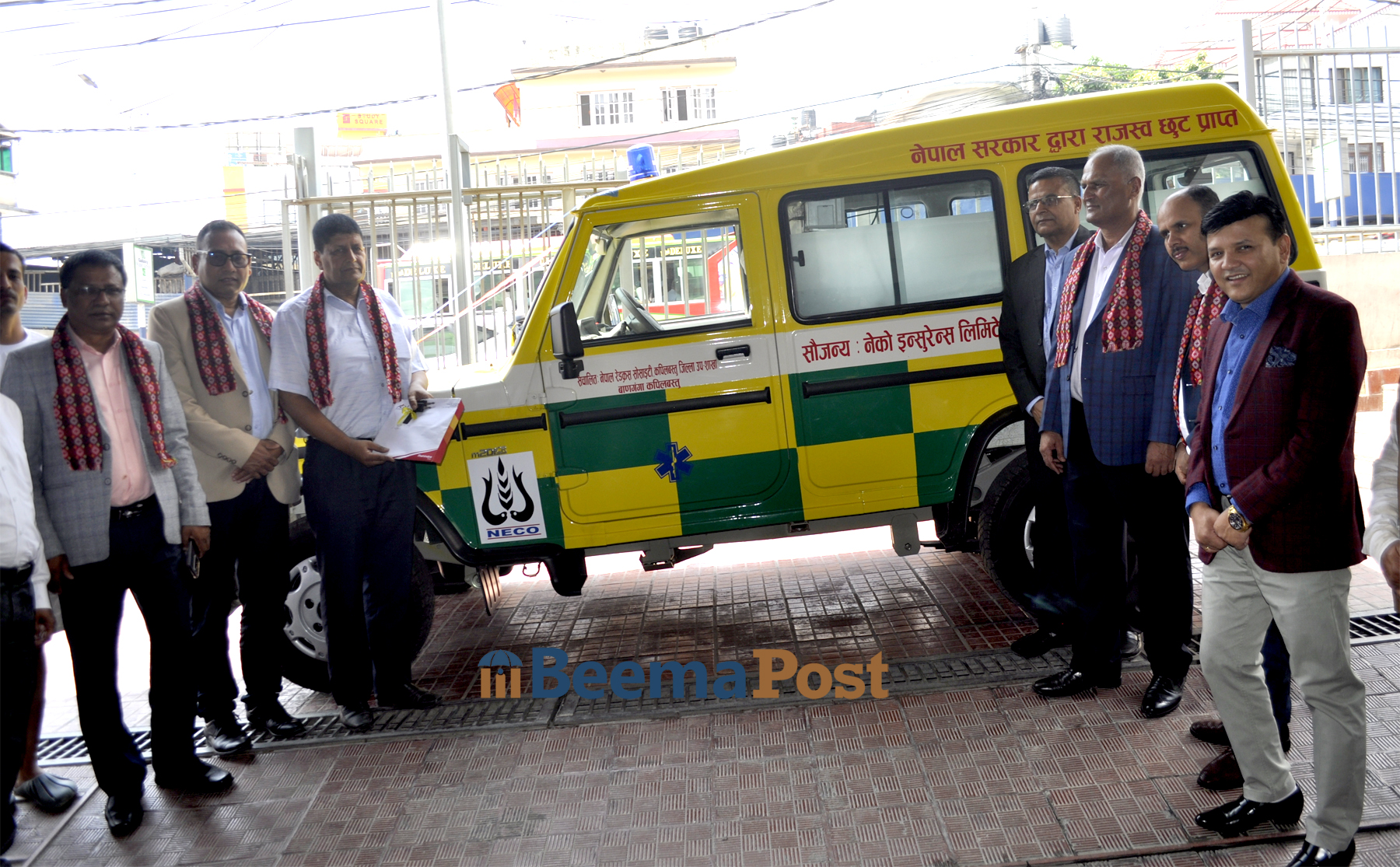सातै प्रदेशमा एम्बुलेन्स दिने नेको इन्स्योरेन्सको घोषणा, पहिलो कपिलवस्तुमा हस्तान्तरण