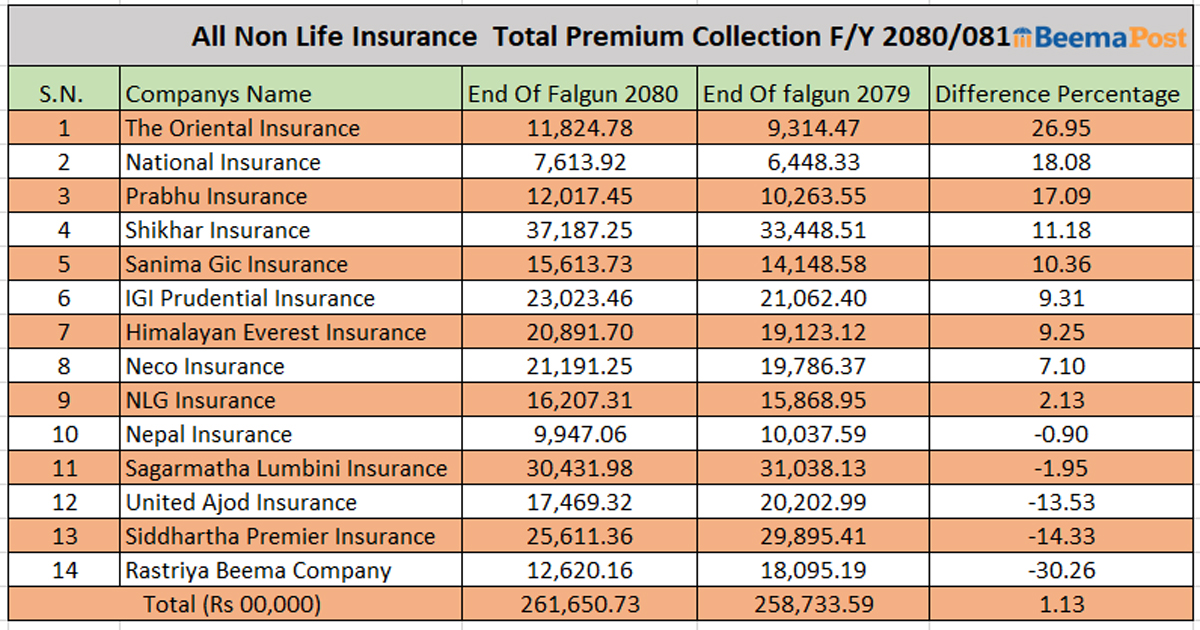 निर्जीवन बीमा कम्पनीहरुको व्यवसाय झिनो अंकले बढ्यो, सरकारीसहित पाँच कम्पनीको घट्दा अन्यको अवस्था कस्तो ? (सूचीसहित)