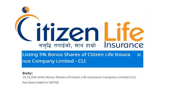 नेप्सेमा सिटिजन लाइफको १८ लाख ७५ हजार कित्ता बोनस सेयर सूचीकृत