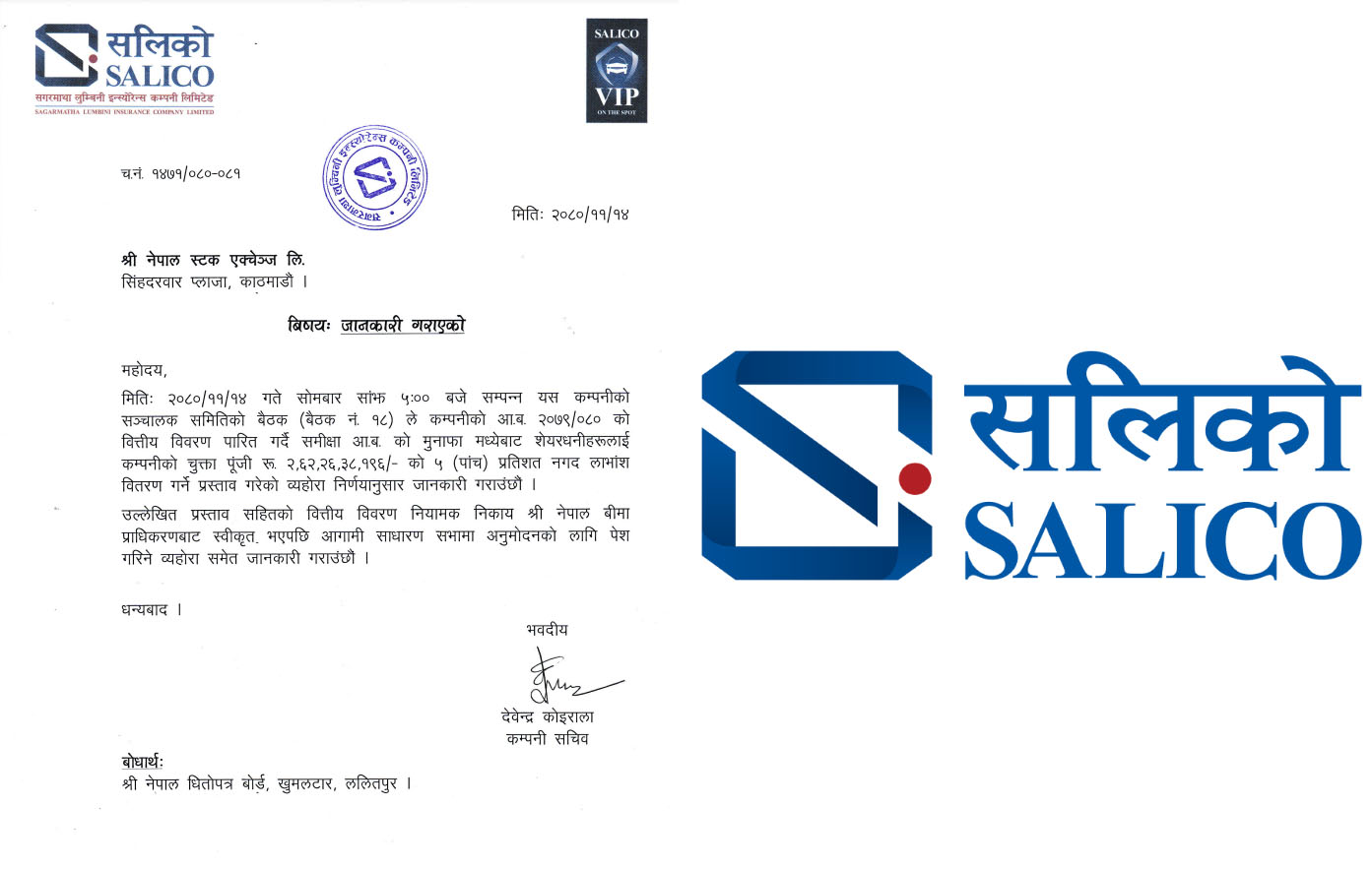शेयर लगानीकर्तालाई नगद लाभांश दिने सलिकोको निर्णय