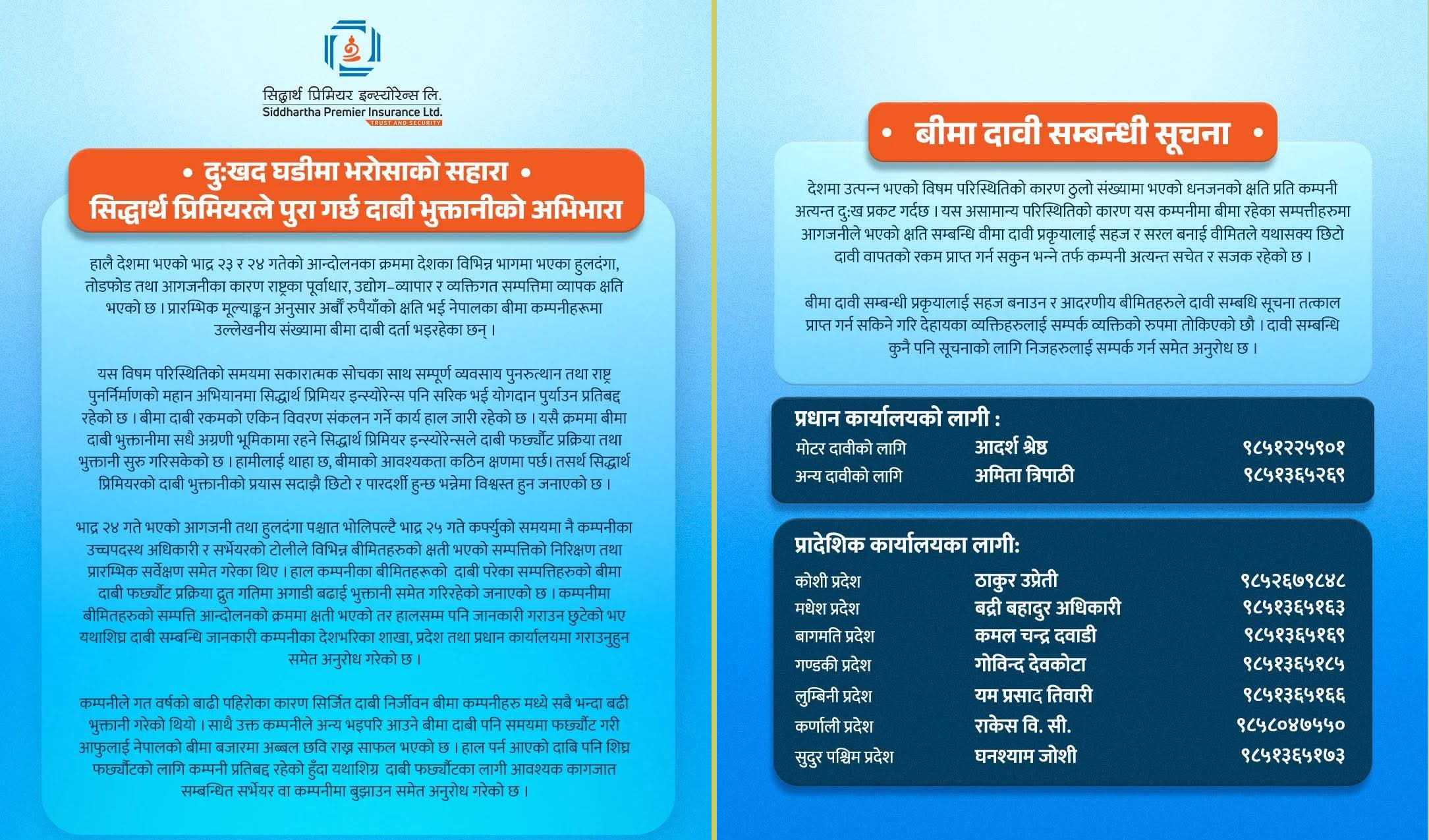 ‘दुःखद घडीमा भरोसाको सहारा–सिद्धार्थ प्रिमियरले पुरा गर्छ दाबी भुक्तानीको अभिभारा’