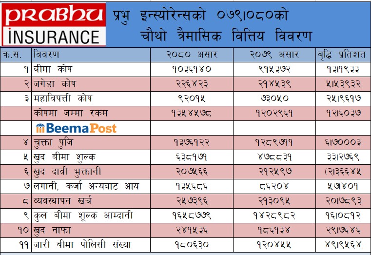 प्रभु इन्स्योरेन्सको अधिकांश सूचक सकारात्मक सुधार, खुद मुनाफा २९ प्रतिशले बढ्यो