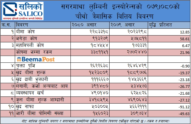 सगरमाथा लुम्बिनी इन्स्योरेन्सको प्रतिशेयर आम्दानी २९ रुपैयाँ, बक्यौता दावी भुक्तानी चार अर्बमाथि