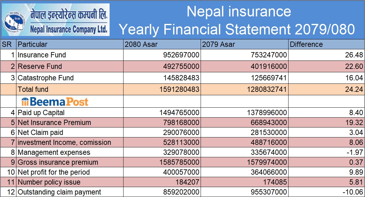 नेपाल इन्स्यारेन्सको खुद बीमाशुल्क आर्जन १९ प्रतिशतले बढ्यो, प्रतिसेयर आम्दानी २६ रुपैयाँ ७६ पैसा
