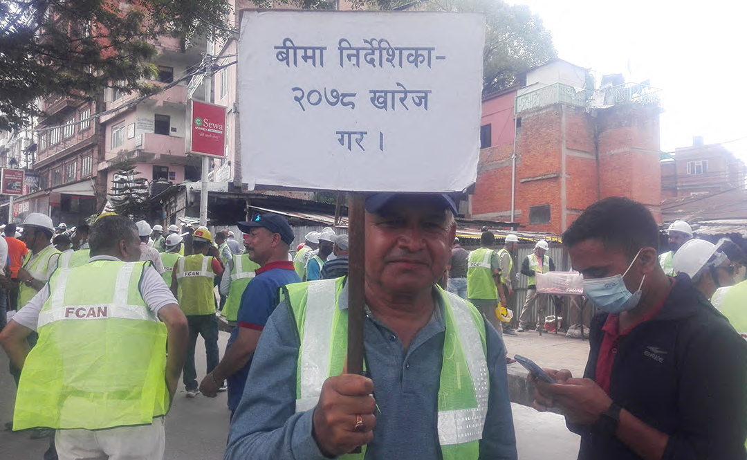 बीमा निर्देशिका २०७८ खारेज गर्न माग गर्दै निर्माण व्यवसायी महासंघ सडक आन्दोलनमा