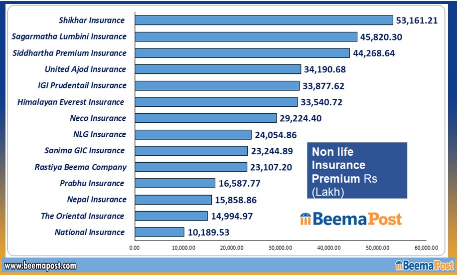 निर्जीवन बीमा कम्पनीहरुको कुल बीमाशुल्क आर्जन ४० अर्बमाथि, कुनको कति ? (तथ्यांक सहित)