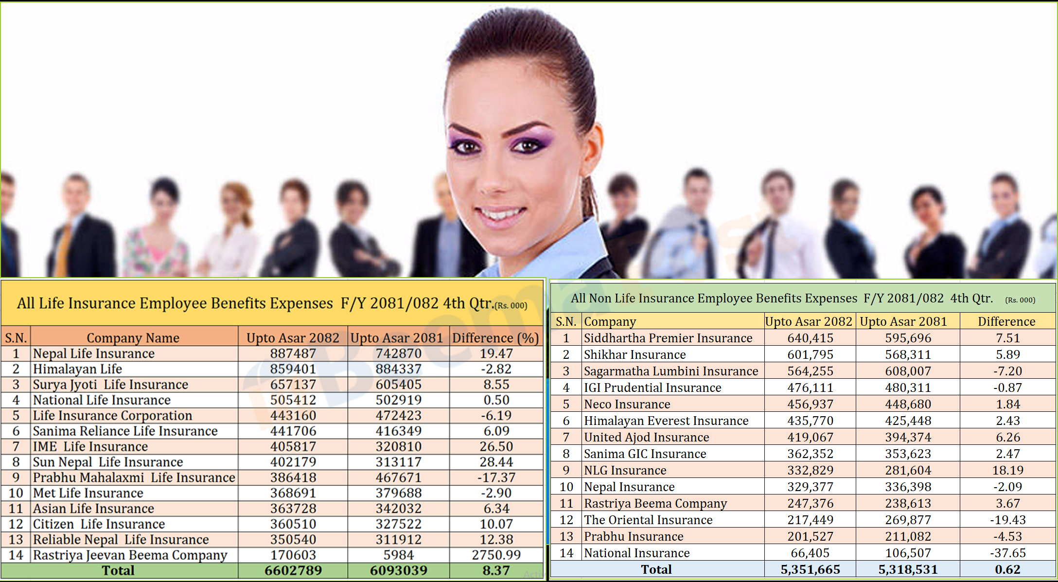 बीमा क्षेत्रका १२ हजार बढी कर्मचारीले लिए वर्षदिनमा १२ अर्ब रुपैयाँको सेवा सुविधा, कुन कम्पनीको बोनश व्यवस्था कस्तो ?