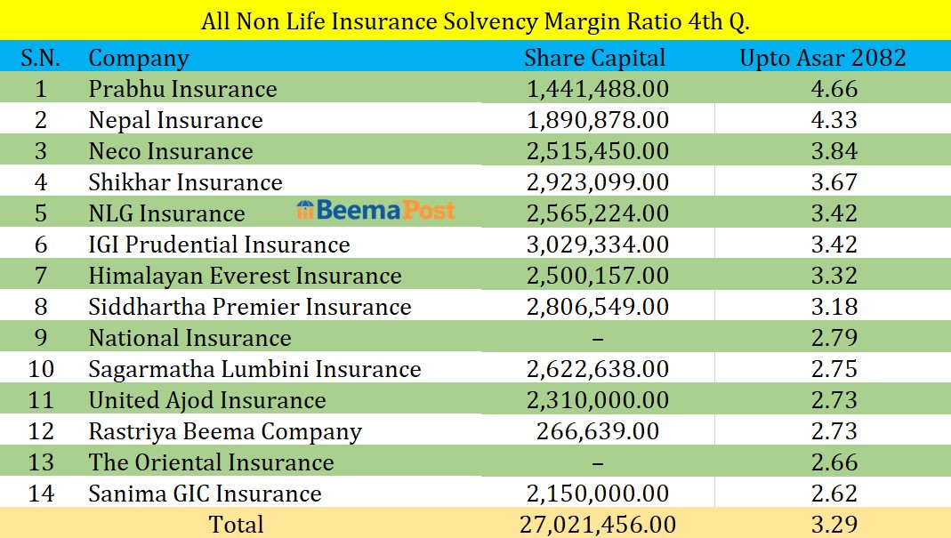 निर्जीवन बीमकको सोल्भेन्सी रेसियो ३.२९, कुन कम्पनीको जोखिम धारण क्षमता कति ?