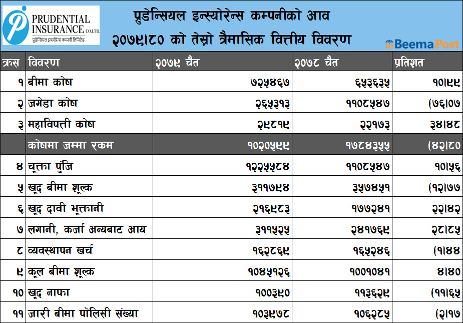 आइजीआईसँग मर्ज हुन लागेको प्रुडेन्सियल इन्स्योरेन्सको खुद नाफा १० करोडमाथि, अन्य सूचक कस्तो ?