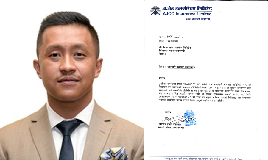 अजोड इन्स्योरेन्सका संचालक सागर गुरुङ्गद्वारा राजिनामा