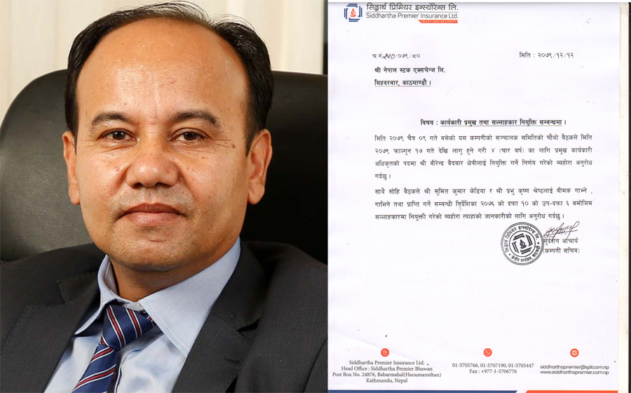 सिद्धार्थ प्रिमियर इन्स्योरेन्सको सिइओमा वीरेन्द्र बैदवार नियुक्त, केडिया र श्रेष्ठ सल्लाहकार