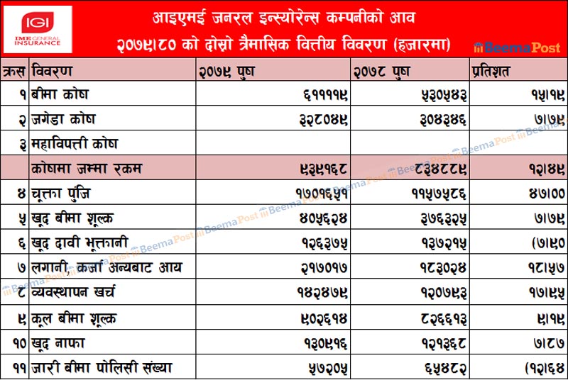 आईएमई जनरल इन्स्योरेन्स कम्पनीको मुनाफा बृद्धि, कुल व्यवसाय बढ्दा इपिएस कति ?