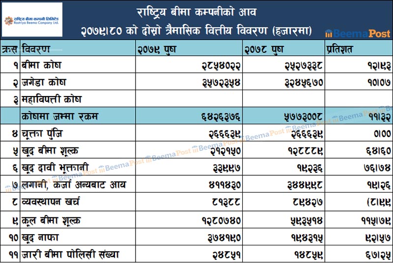 राष्ट्रिय बीमा कम्पनीको मुनाफामा दोब्बर बृद्धि, प्रतिशेयर आम्दानी २८० हुँदा अन्य सूचांक कस्तो ?