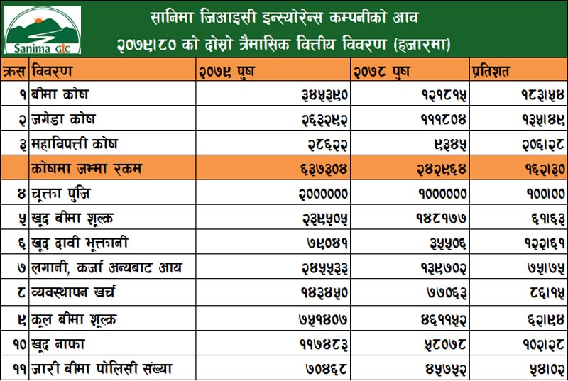 सानिमा जिआईसी इन्स्योरेन्सको मुनाफा शतप्रतिशतले बढ्यो, प्रतिशेयर आम्दानी कति ?