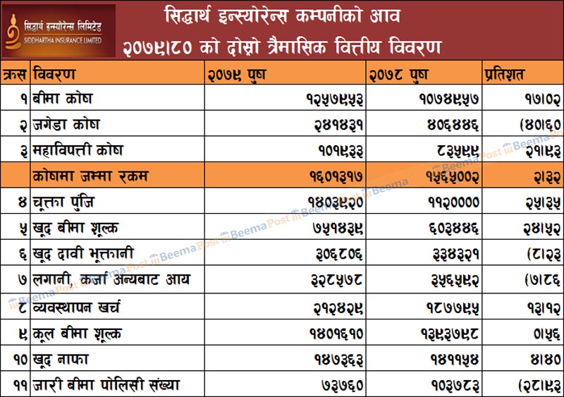 सिद्धार्थ इन्स्योरेन्सको खुद नाफा १४ करोडमाथि, एक अर्ब ४० करोड रुपैयाँ बीमा शुल्क आर्जन