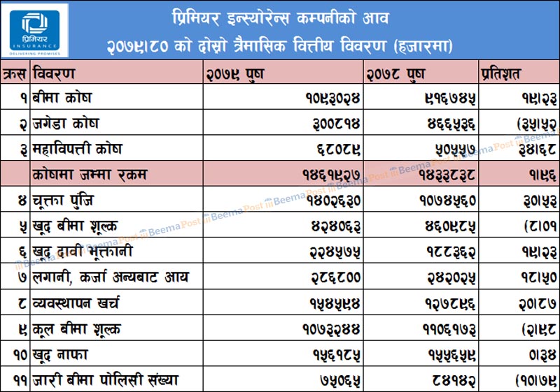 प्रिमियर इन्स्योरेन्सको खुद नाफा १५ करोडमाथि, अधिकांश सूचकमा देखियो सुधार