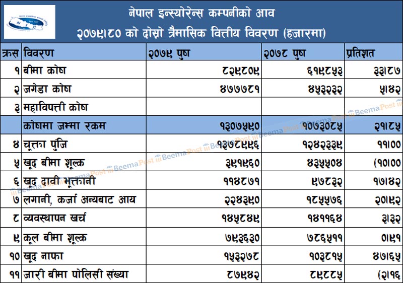 नेपाल इन्स्योरेन्सको खुद नाफा ४७ प्रतिशतले बढ्यो, अन्य सूचकमा सकारात्मक सुधार