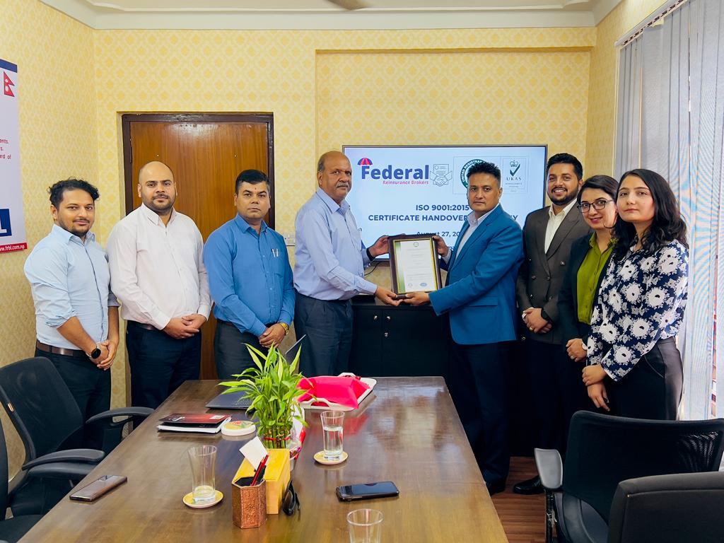 फेडेरल रि ईन्स्योरेन्स ब्रोकर्स बन्यो आईएसओ प्राप्त गर्ने नेपालकै पहिलो पुनर्बीमा दलाल कम्पनी