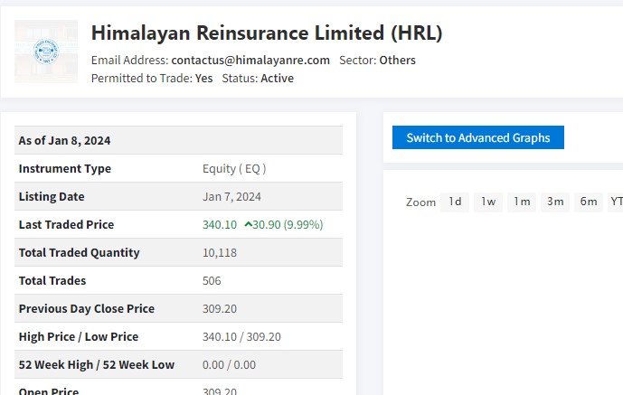 कारोबार सुरु भएको केही सेकेन्डमै हिमालयन रिइन्स्योरेन्सको शेयर मूल्यमा सर्किट