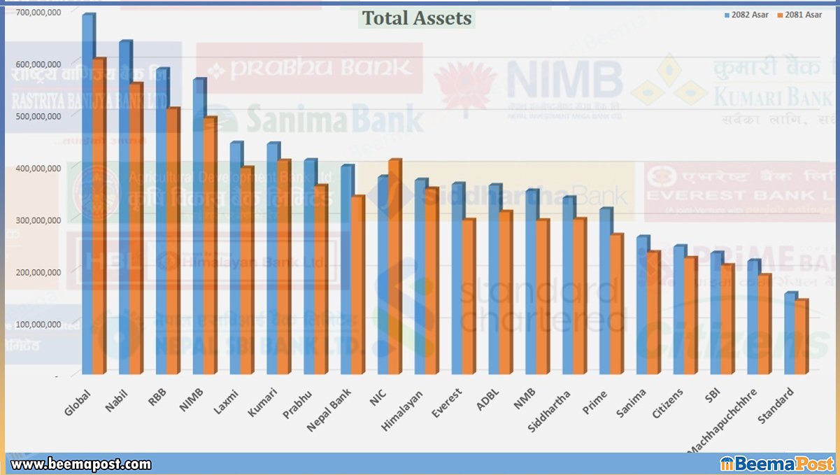 वाणिज्य बैंकहरुको सम्पत्ति साढे ७७ खर्ब: धनी बैंकको शीर्षस्थानमा ग्लोबल र नबिल, कुनसँग कति छ ?