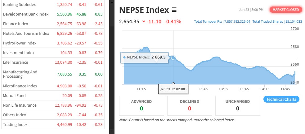 पुँजी बजारमा करेक्सनः ७ अर्ब ८५करोडको कारोबार, फाइनान्सको सर्वाधिक घट्यो