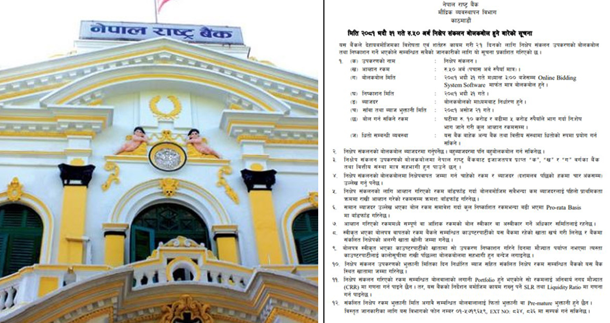 राष्ट्र बैंकले आज पनि बजारबाट ५० अर्ब झिक्दै