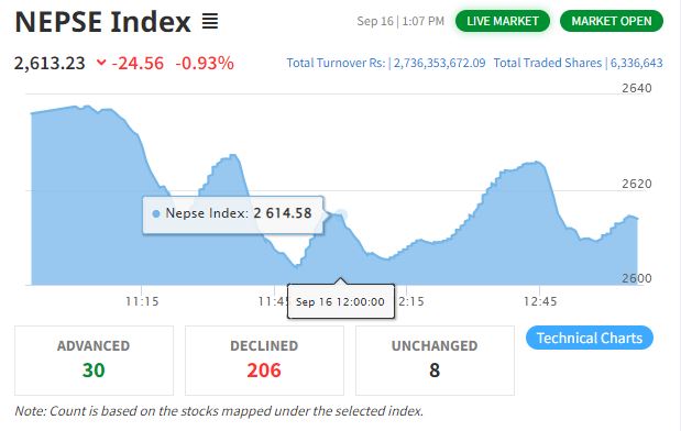 बजारमा गिरावटको निरन्तरताः डुब्दै लगानीकर्ताको अर्बौ रकम, परिसूचक र कारोबार दुबै खुम्चियो