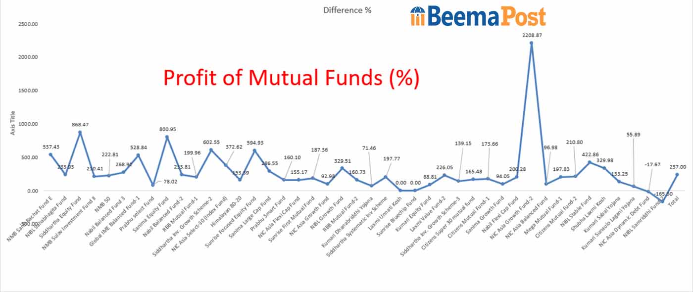 म्युचुअल फण्डको नाफा २३७ प्रतिशतले बढ्यो: शेयर बजारमा लगानी ४३ अर्ब ३० करोड, कुनको न्याभ कति ?