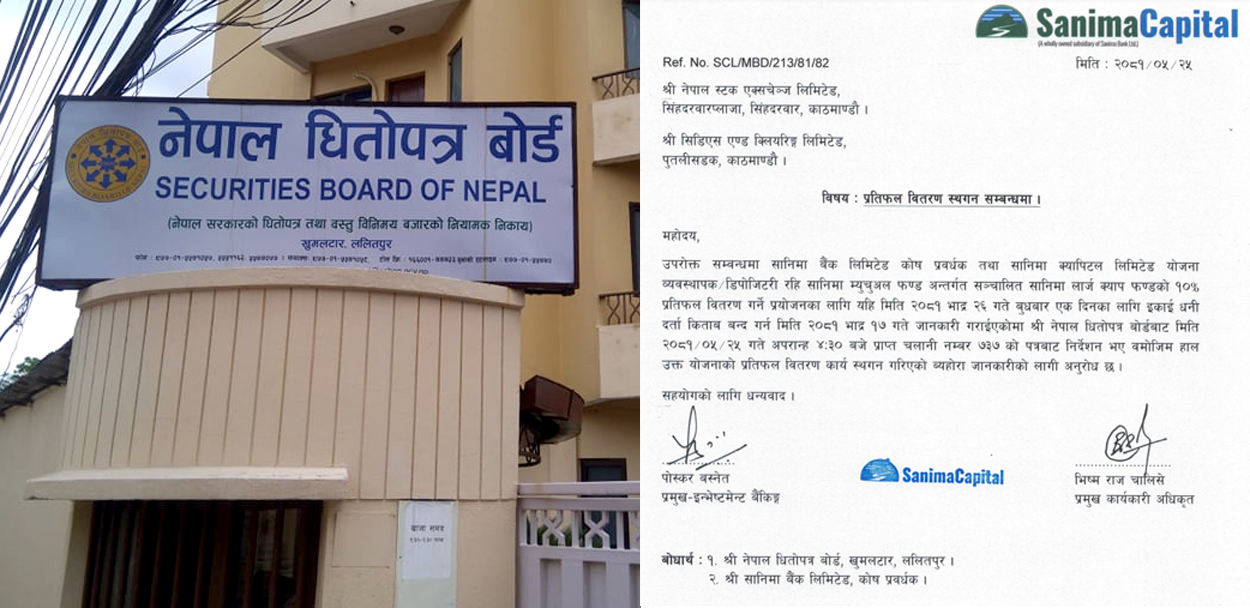 सानिमा लार्ज क्याप फन्डको लाभांश स्थगित