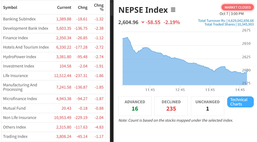 दशैंपछिको पहिलो दिनमै शेयर बजारमा पहिरो, ५८ अंकले घट्दा साढे चार अर्ब कारोबार