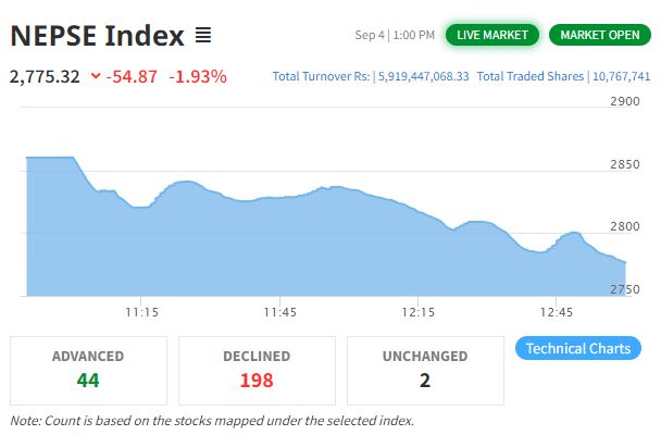 बजारमा देखियो गिरावट, एक्जिट तिर झुम्मिदै लगानीकर्ता