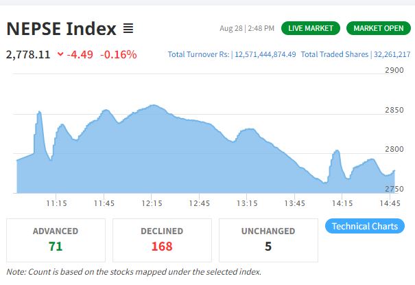 १११ अंकले घट्यो नेप्सेः शेयर बजार ३२०० को विन्दु पुग्ने लगानीकर्ताहरुको प्रक्षेपणलाई इन्डेक्सले गर्ला त सर्पोट ?