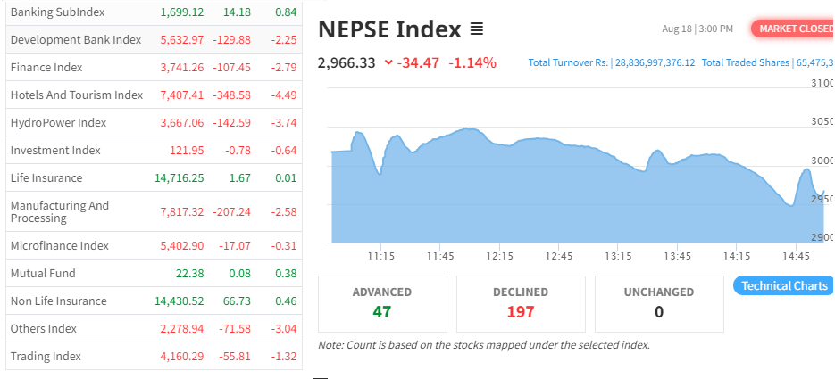 दोहोरो अकंले घट्यो बजारः कारोबार २८ अर्ब ८३ करोड, एक्जिट हुने बेला आएको हो ?