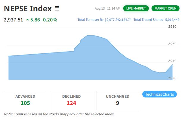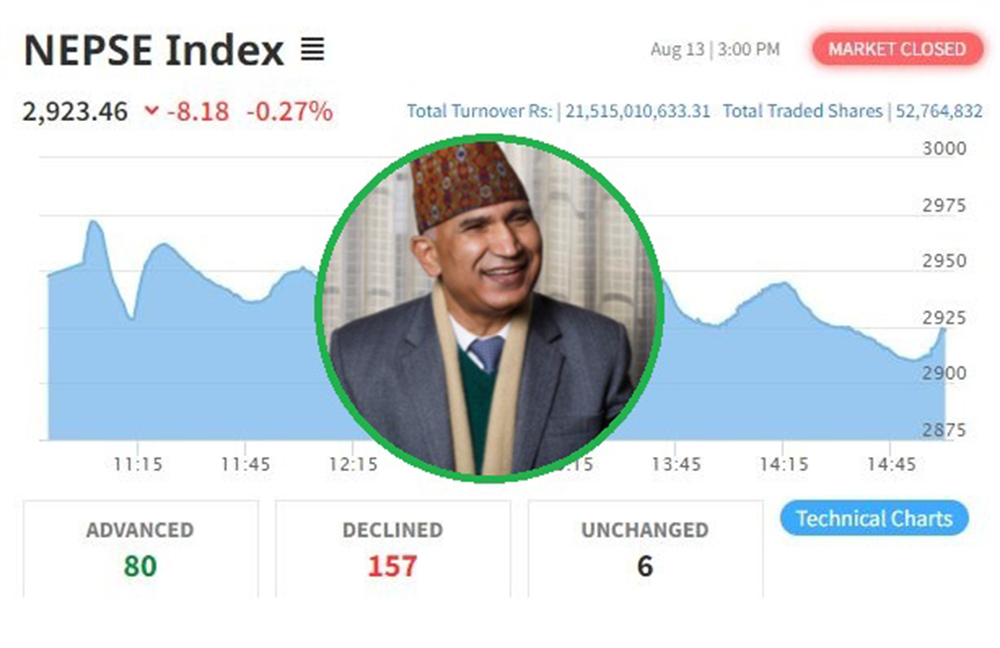 शेयर बजारमा करेक्सनः साढे २१ अर्बको कारोबार हुँदा परिसूचक २९२३ बिन्दुमा, बुलको यात्रा कहाँसम्म ?