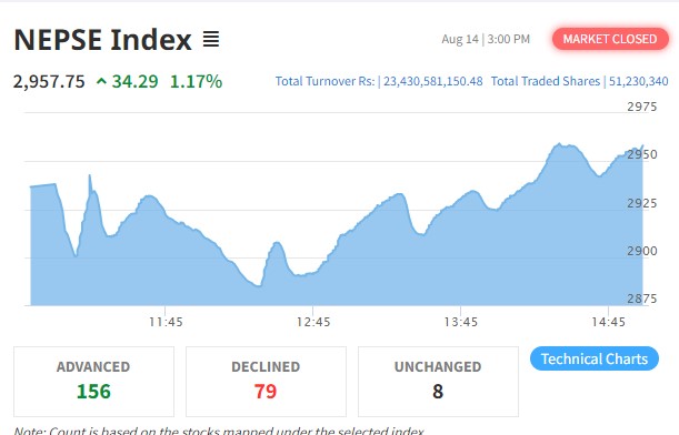 १५६ कम्पनीको शेयरमूल्यमा छायो हरियाली, ११ वटामा सकारात्मक सर्किट