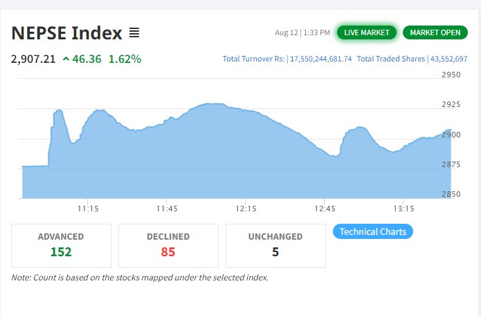 १७१ कम्पनीको शेयरमूल्यमा छायो हरियाली, १२ वटामा सकारात्मक सर्किट, कुनले कतिले बढ्यो ?