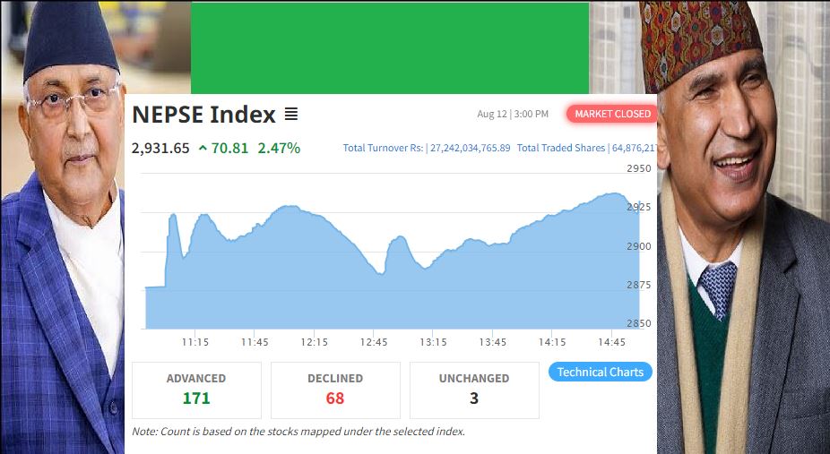 २७ अर्बको शेयर कारोबारः नेप्से ७० अकंले बढ्दा परिसूचक २९३१ बिन्दुमा, नयाँ रेकर्ड कायम राख्ला ?