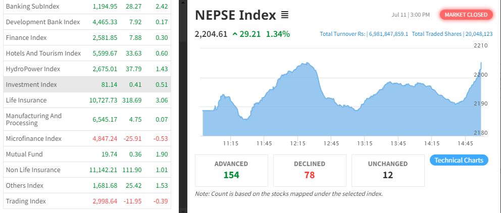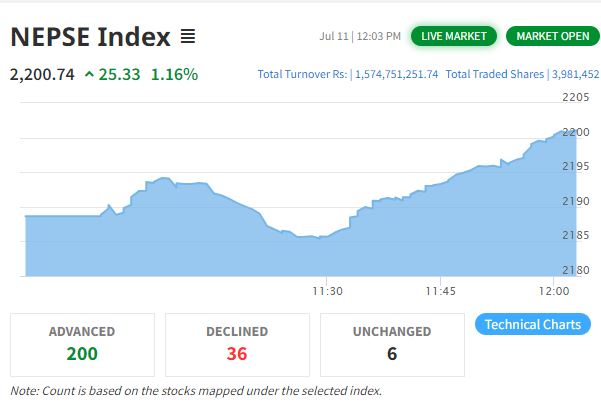 २१ सयलाई तोडेर सेयर बजार २२०० अंकले नाघ्यो