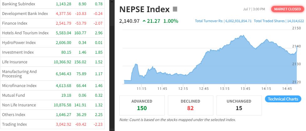 शेयर बजारमा उत्साह कायमैः परिसूचक २१४० पुग्दा ६ अर्बको कारोबार, लगानीकर्ताको मनोबल उच्च
