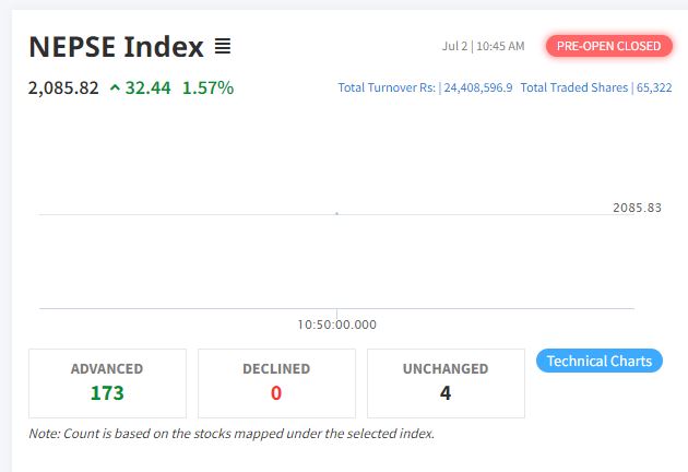प्रि ओपन सेसनमा नेप्से सूचक ३२.४४ विन्दुले बढ्यो