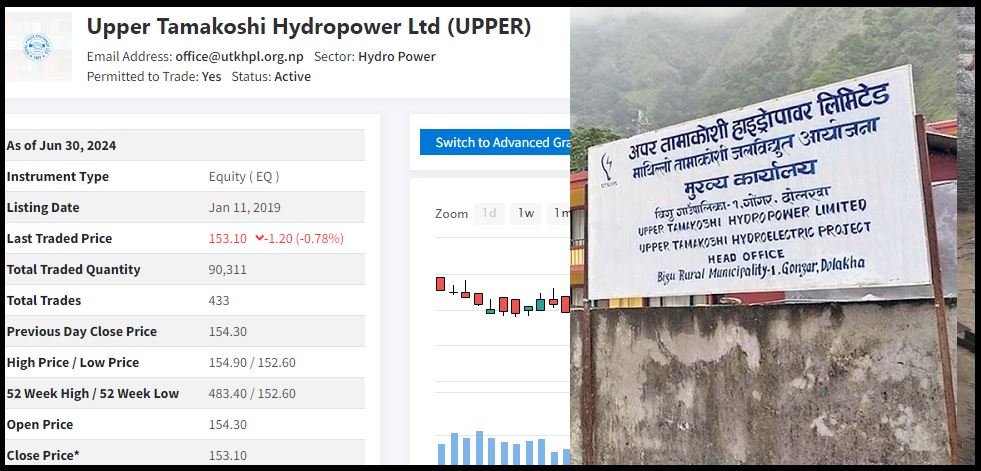 निरन्तर घट्दो क्रममा अपर तामाकोशीको शेयर, कट अफ प्राइस नजिक मूल्य
