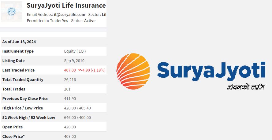 निरन्तर घट्दो क्रममा सूर्यज्योति लाइफको शेयर मूल्य