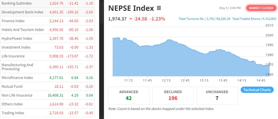 २४ अकंले घट्यो नेप्से, ११ उपसूचक राताम्य हुँदा खुम्चियो कारोबार