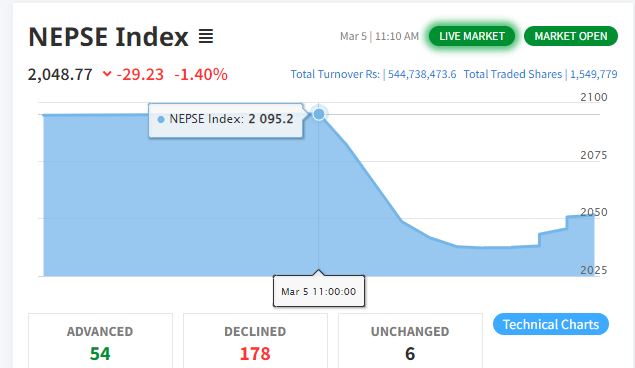 सेयर बजारमा पहिरो, १० मिनेटमै २९ अकंले घट्यो