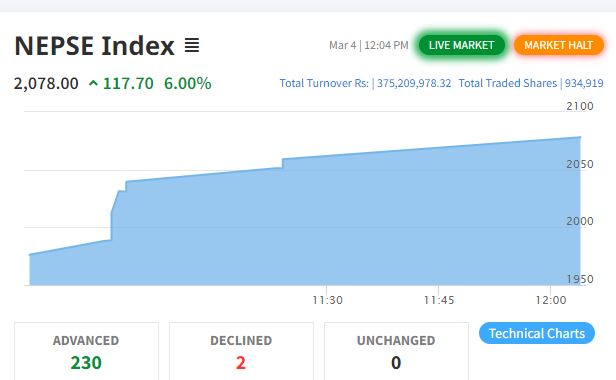 नेप्से ६ प्रतिशतले बढ्दा ३७.५२ करोडको कारोबार