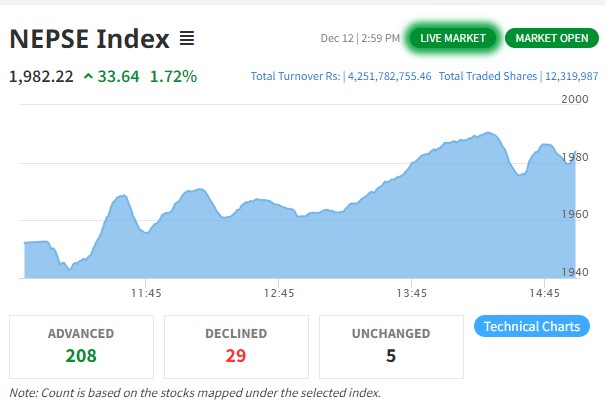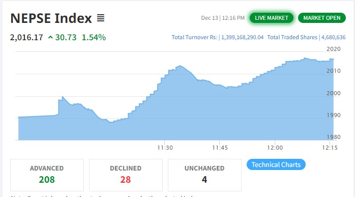 नेप्से ३६ अंकले बढ्यो, सबै उपसूचकमा हरीयाली